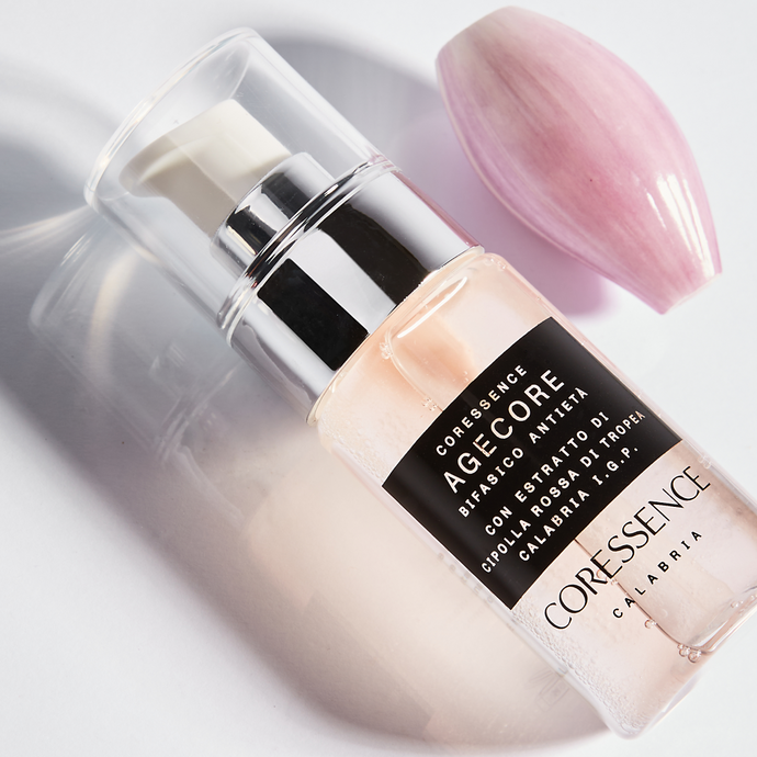 Come dimostrano gli studi scientifici e le analisi condotte sull'estratto ottenuto dalla nostra Cipolla Rossa di Tropea IGP, sia la buccia che il bulbo sono ricchi di sostanze naturali chiamate antocianine, una tipologia di polifenoli la cui struttura chimica le conferisce questa particolare colorazione. Le antocianine e i flavonoidi presenti nella Cipolla Rossa di Tropea IGP, protagonista della prima linea di cosmetici CORESSENCE, contribuiscono al benessere della pelle: regolano le attività antinfiammatorie, prevengono e riparano i danni del DNA cutaneo.